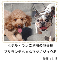 ペットサロン、ペットホテルやドッグランお預かりなどで、ご来店いただきました