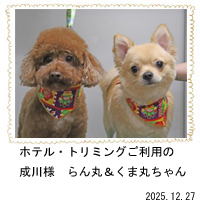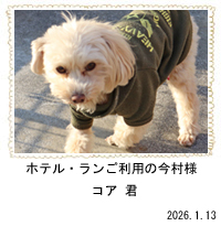 ペットサロン、ペットホテルやドッグランお預かりなどで、ご来店いただきました